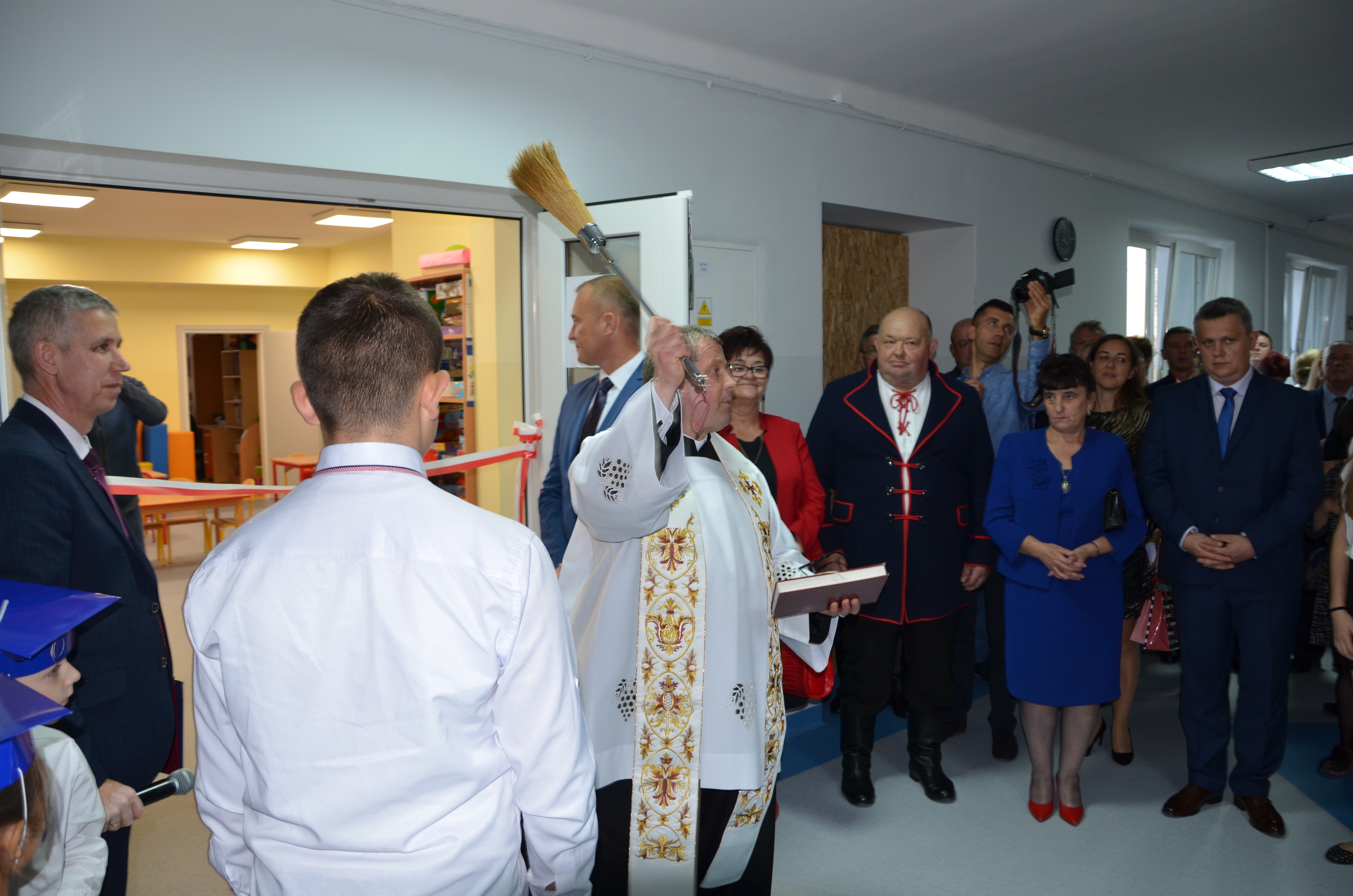 27 października zorganizowano uroczyste otwarcie szkoły po rozbudowie połączone ze ślubowaniem pierwszaków. Dyrektor Jerzy Snopek długo wymieniał co zostało zrobione i dziękował wspólnie z przedstawicielami uczniów i rodziców wszystkim, którzy przyczynili się do rozbudowy placówki. Szczególne podziękowania skierował do wójta Przemysława Łysaka i radnego Stanisława Anioła. - Wójt zawsze mówił, że szkoła w Leszczynach jest ważna, że będzie nam pomagać. Ja wierzyłem, że słowa dotrzyma i tak się stało. Dziś mamy, można powiedzieć, szkołę na miarę XXI wieku. Wreszcie dzieci nie jedzą na korytarzu. Mamy zabezpieczenia przeciwpożarowe, świetlicę, koniec z cieknącym dachem - wymieniał dyrektor Snopek.